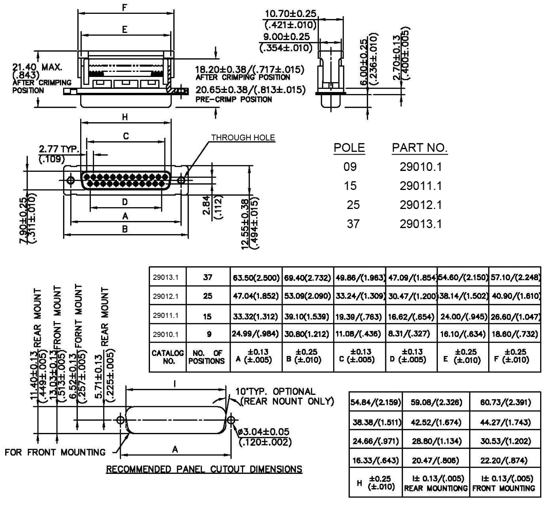 Produktinformationen für DSub Buchse, Schneid-Klemme, flache Bauform, EDFF 09 LPIII/Z