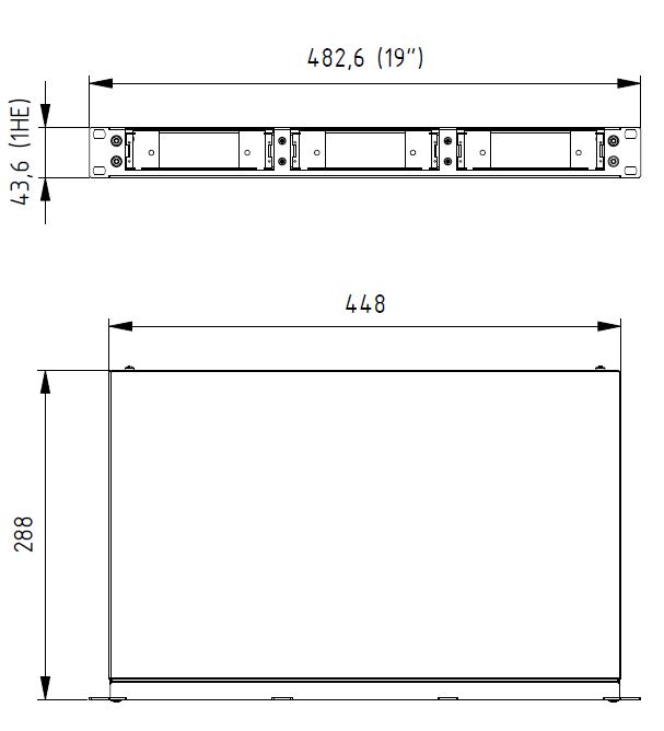 19" 1U Subrack for 3x 7DU plug-in modules, aluminum front, grey