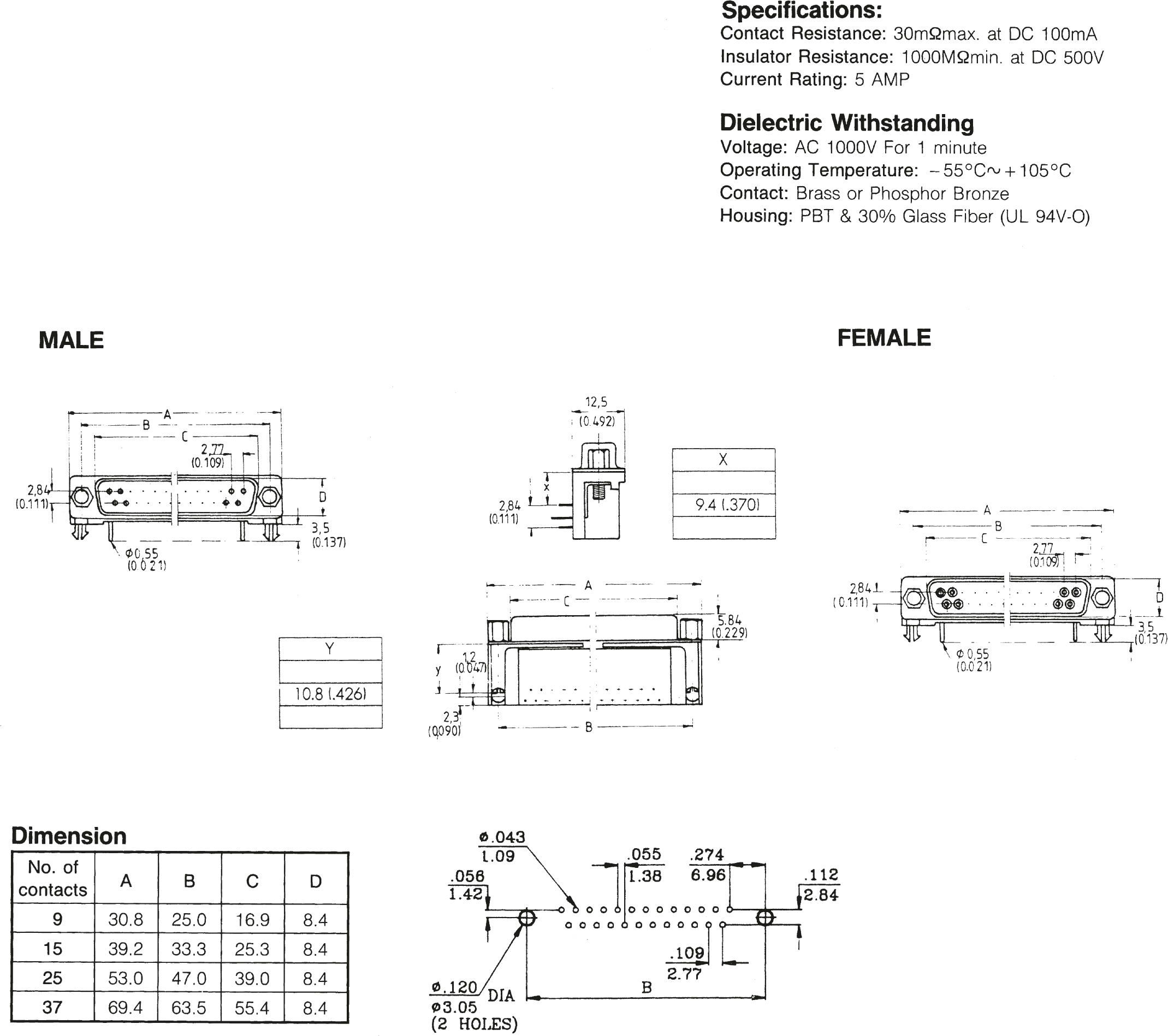 DSub Stecker 9.4 mm, 90° abgewinkelt, EURO