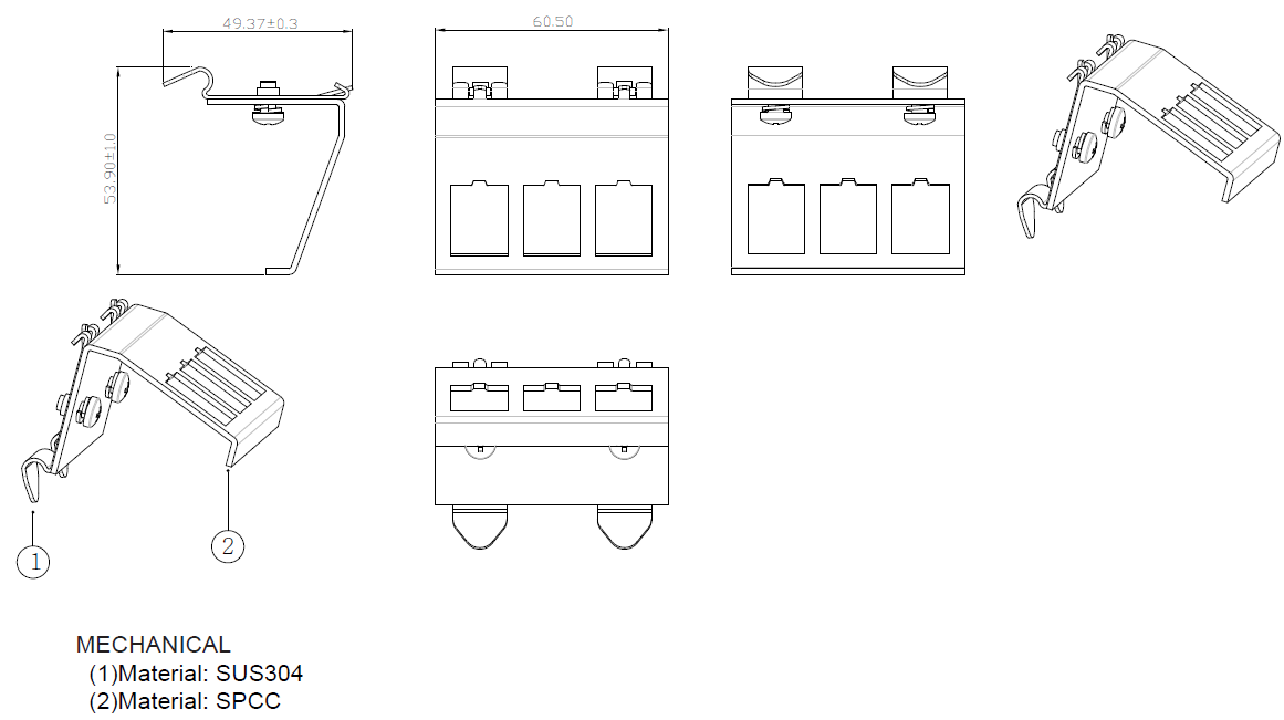 | ET-25184.2V2 | Keystone holder for DIN-Rail, Stainless Steel, for 3 x Keystone | 3 |