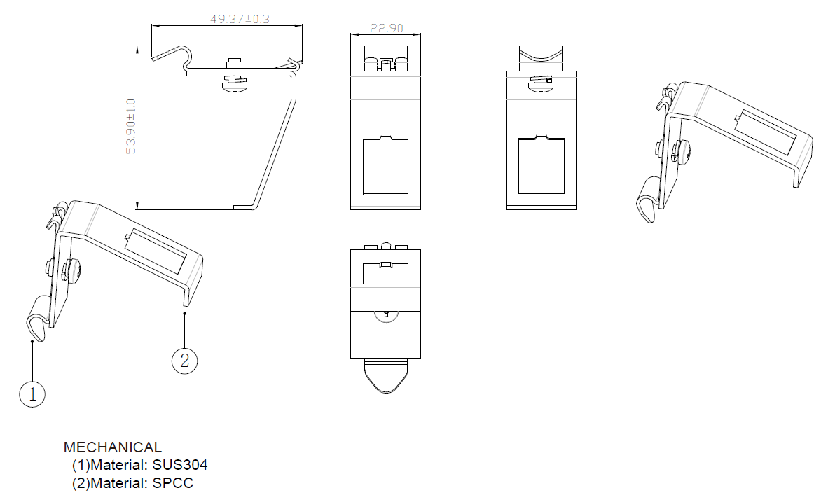 | ET-25184.1V2 | Keystone holder for DIN-Rail, Stainless Steel, for 2 x Keystone | 2 | |