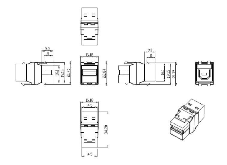 Mounting depth: 32 mm, USB2.0 type A jack / type B jack. Housing material: plastic