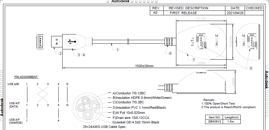 | Printing: | AWM 2725 80℃ 30V VW-1 28AWG/1P AND 24AWG/2C USB CABLE |