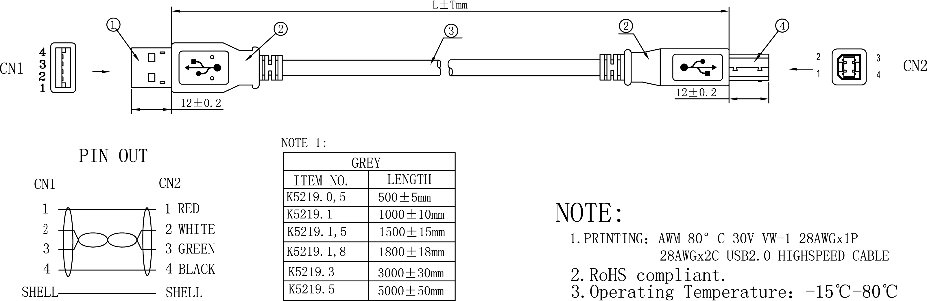 Through the quality conductor and the excellent shielding this cable is able to transmit data up to 480Mbit per seconds. High-quality connection cable for printer, USB hard-disks and other devices.