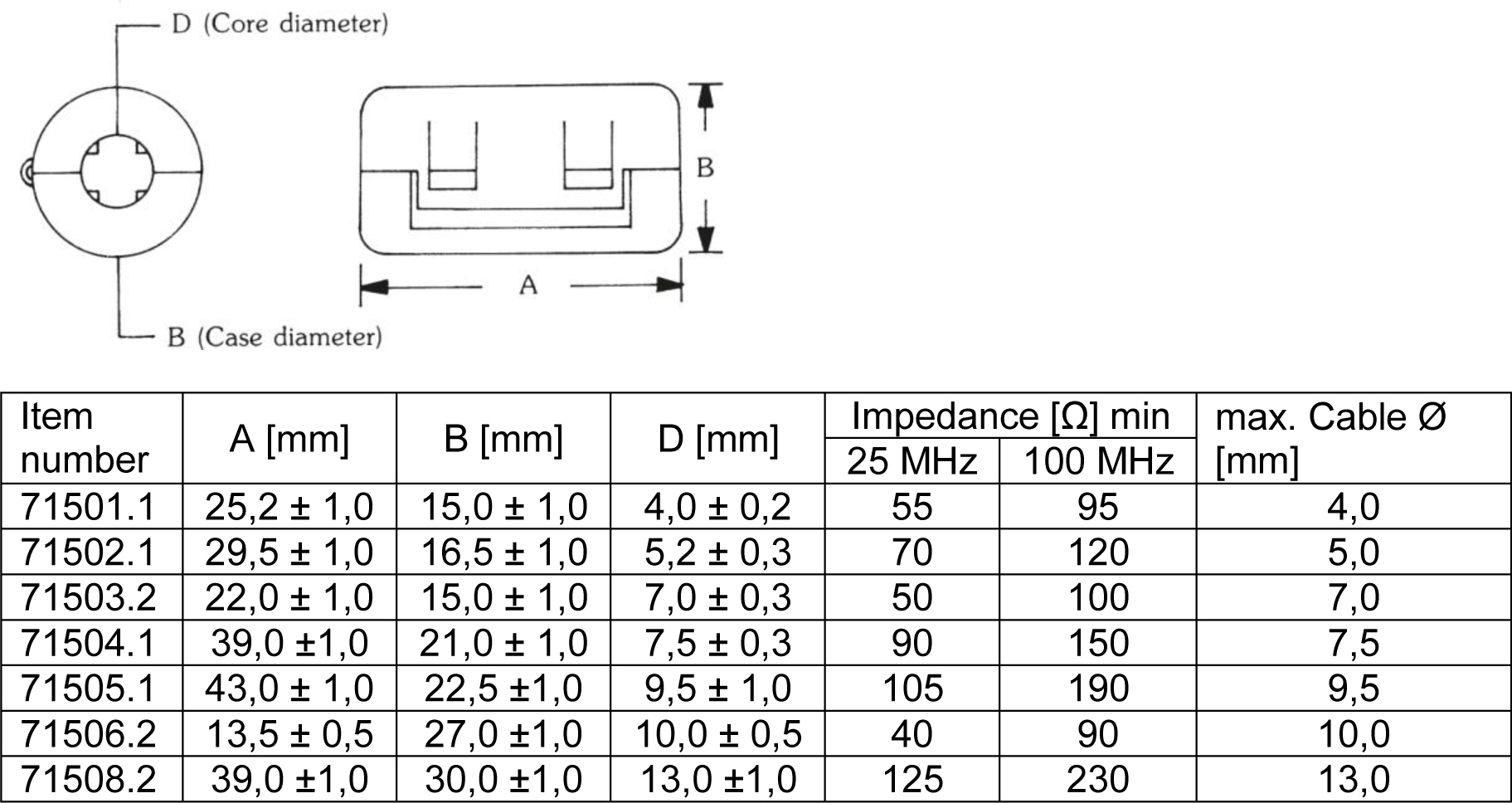 | 71503.2 | Ferrit-Ringkern 7,0mm, schwarz, rund | 7,0 mm | rund | |
