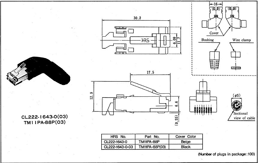 Produktinformationen für Knickschutztülle Hirose 90° rechts/links, schwarz