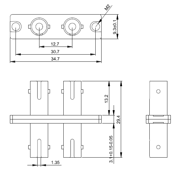 ST Duplex Kupplung im Metallgehäuse Mit Keramikhülse. Passen in SC-Duplex Ausbrüche. Befestigungsmöglichkeit über M2 Gewindeschrauben diese sind im Lieferumfang enthalten.