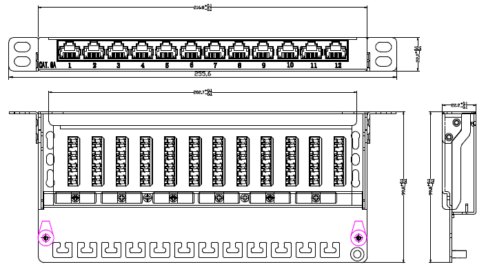 Produktinformationen für Mini-Patchpanel STP 12xRJ45 Cat.6A, 10“ 0,5HE, RAL7035 grau