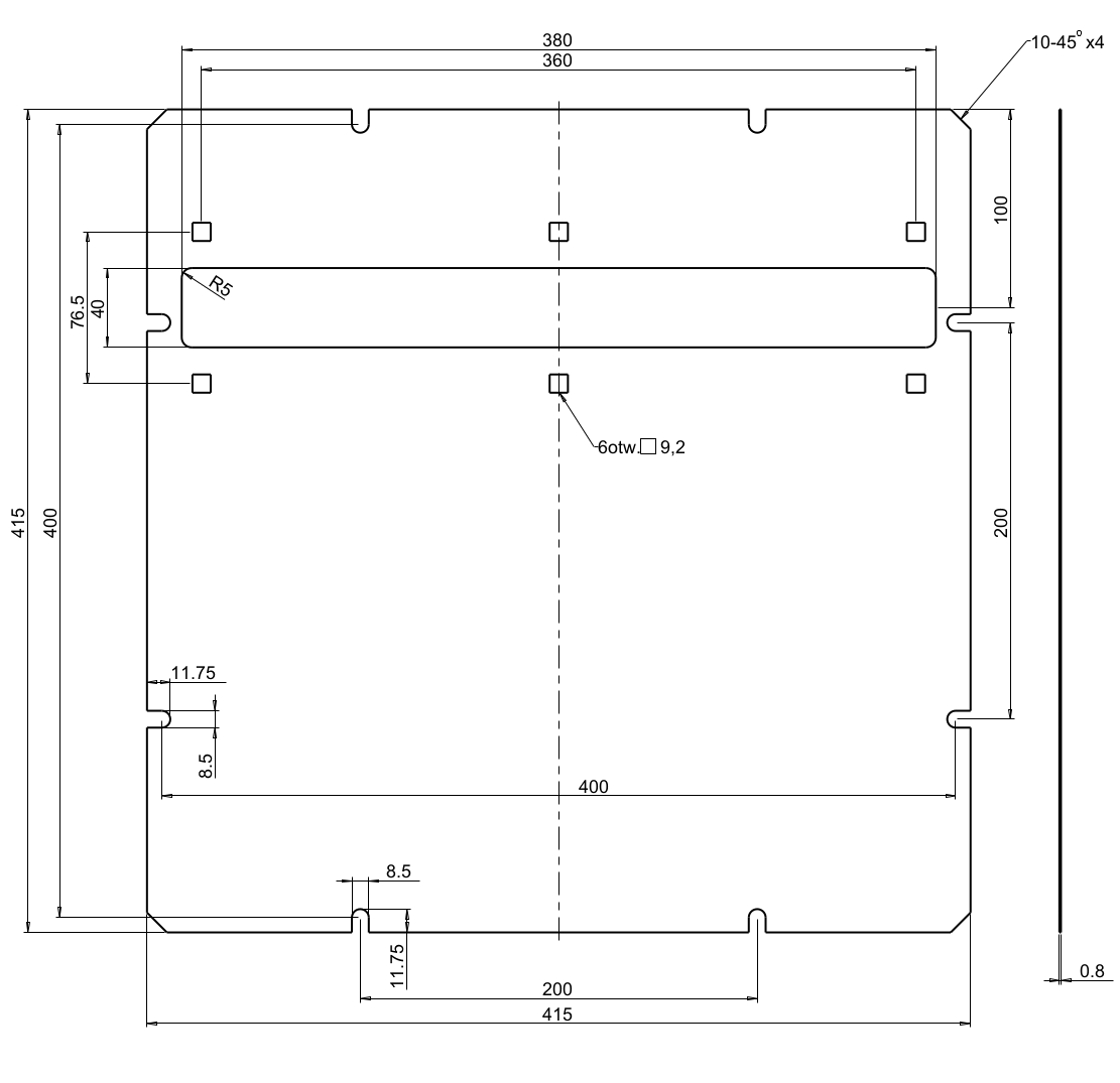 Geeignet für Öffnungen 380 x 380 mm (Typ A, siehe Skizze)