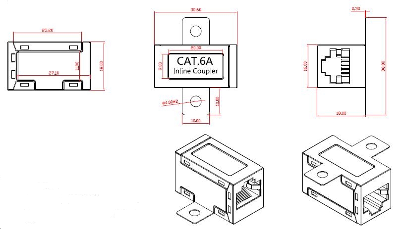 Produktinformationen für Modular-Adapter RJ45 STP, Cat.6A, ,mit Flansch für Wandmontage