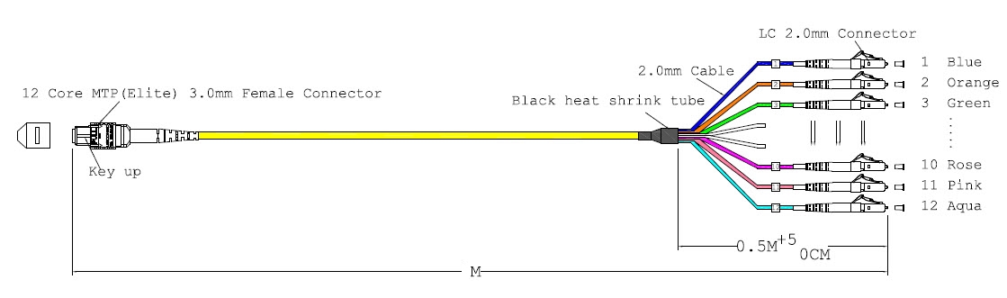 | MTPF12LCOS2-2 | MTP®/APC(F)-LC Trunkkabel OS2 12 Fasern Typ B LSZH gelb 2m | 12 | 1 x MTP® female | 12 x LC | 2.0 m | |