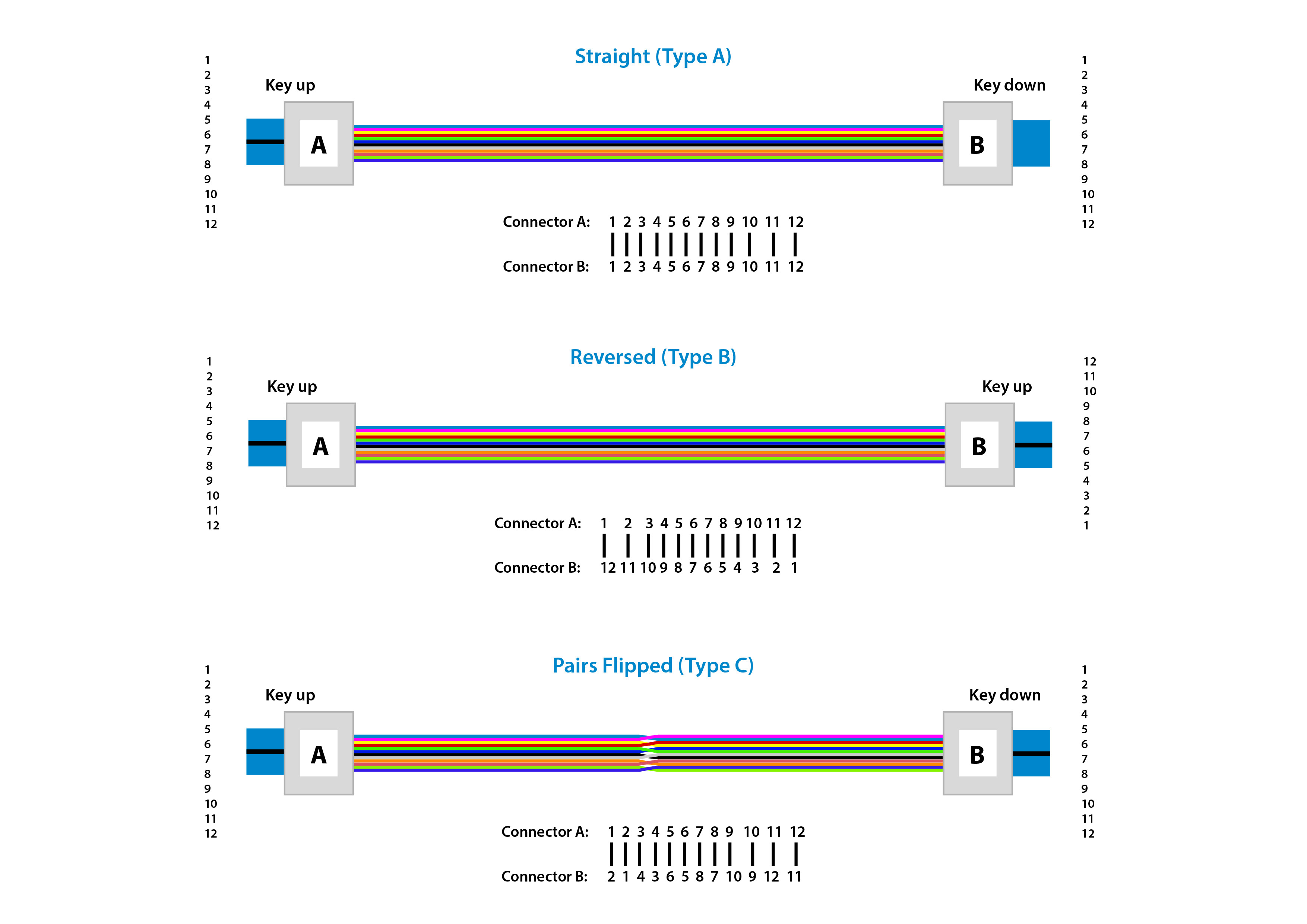Hinweis: In jeder MTP®-Übertragungsstrecke wird ein Patchkabel Typ B (gekreuzt) benötigt.