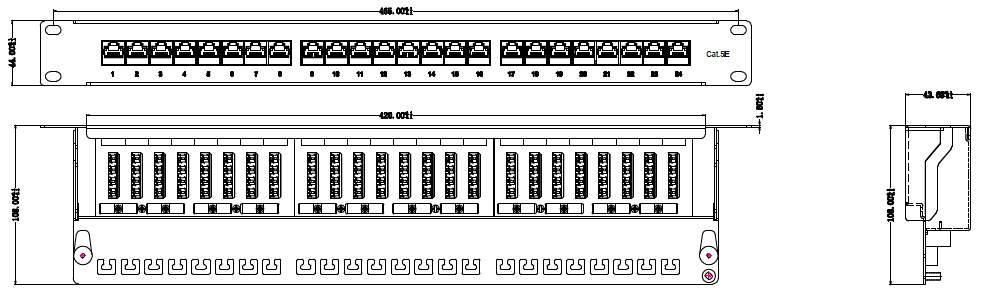 Produktinformationen für Patchpanel STP 24xRJ45 Cat.5e, 19“ 1HE, RAL7035 grau