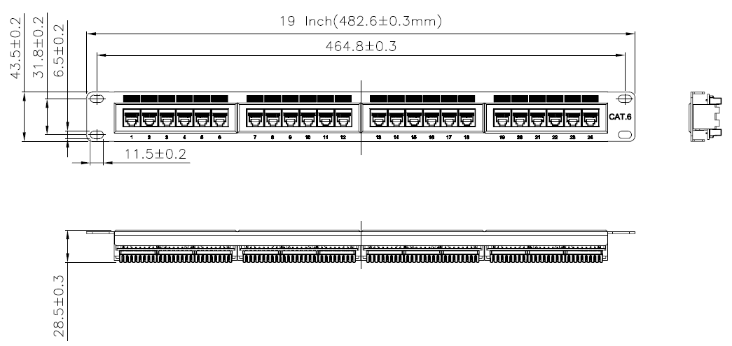 Produktinformationen für Patchpanel UTP 24xRJ45 Cat.6, 19“ 1HE, ,180°, RAL9005 schwarz