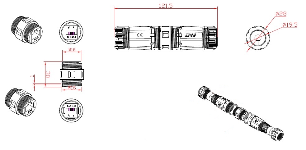 Produktinformationen für RJ45 Cat.6 IP68 Durchführungskupplung,Buchse/Buchse Verbindungsmuffe