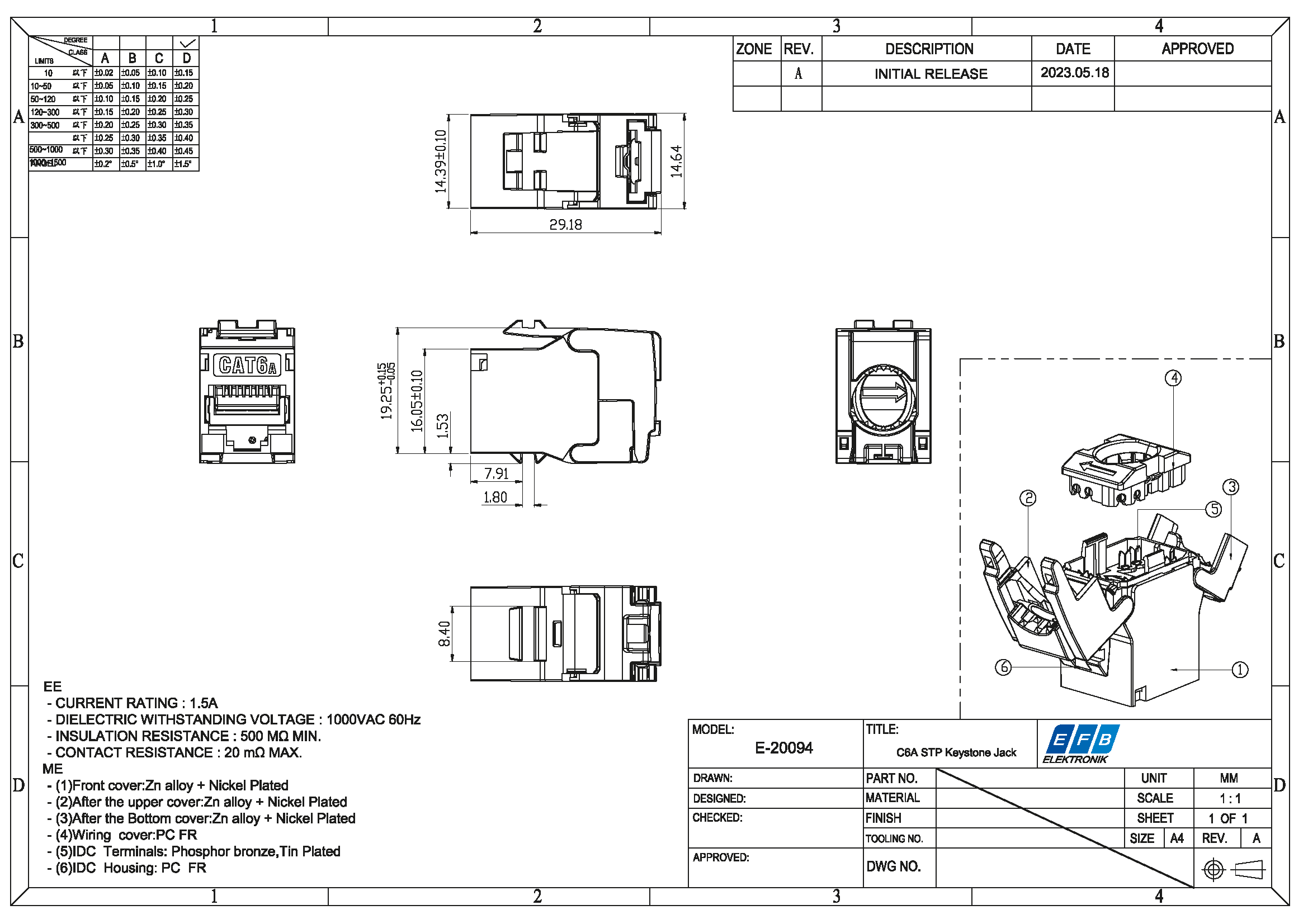 Das E-20094 Cat.6A Keystone Modul vereint sehr hohe Systemreserven mit einem Slimline/Shortbody Gehäuse. Das Slimline/Shortbody Gehäuse erlaubt dabei einen Einbau in UAE Rahmen/Tragringe sowie durch die kurze Bauform eine einfachere Installation in Unterflursystemen und flachen Wanddosen. Der hohe Qualitätsstandard des Cat.6A Keystone Moduls gewährleistet sehr gute Übertragungseigenschaften für 10 Gigabit Anwendungen auch über einen langen Zeitraum. Die werkzeuglose Montage ist sehr schnell und einfach, es wird kein Spezialwerkzeug benötigt. Mit dem Cat.6A Keystone Module erhalten Sie ein vollgeschirmtes RJ45-Modul, das langfristig und zuverlässig 10 Gbit/s Ethernet-Dienste in Ihrer Netzwerkinstallation garantiert.
