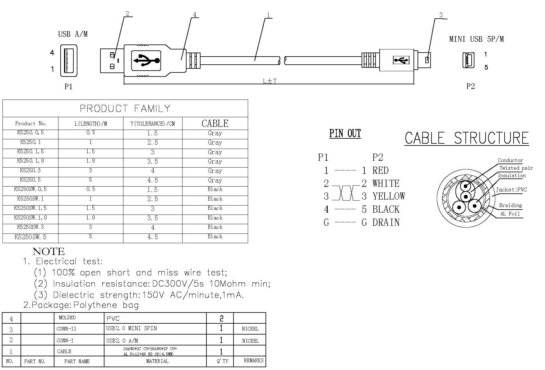 | K5250SW.1,5V2 | USB2.0 Anschlusskabel A-Mini B (5polig), St.-St., 1,5m, schwarz, Classic | schwarz | 1,5 m | 4,5 mm | 24+28AWG | |